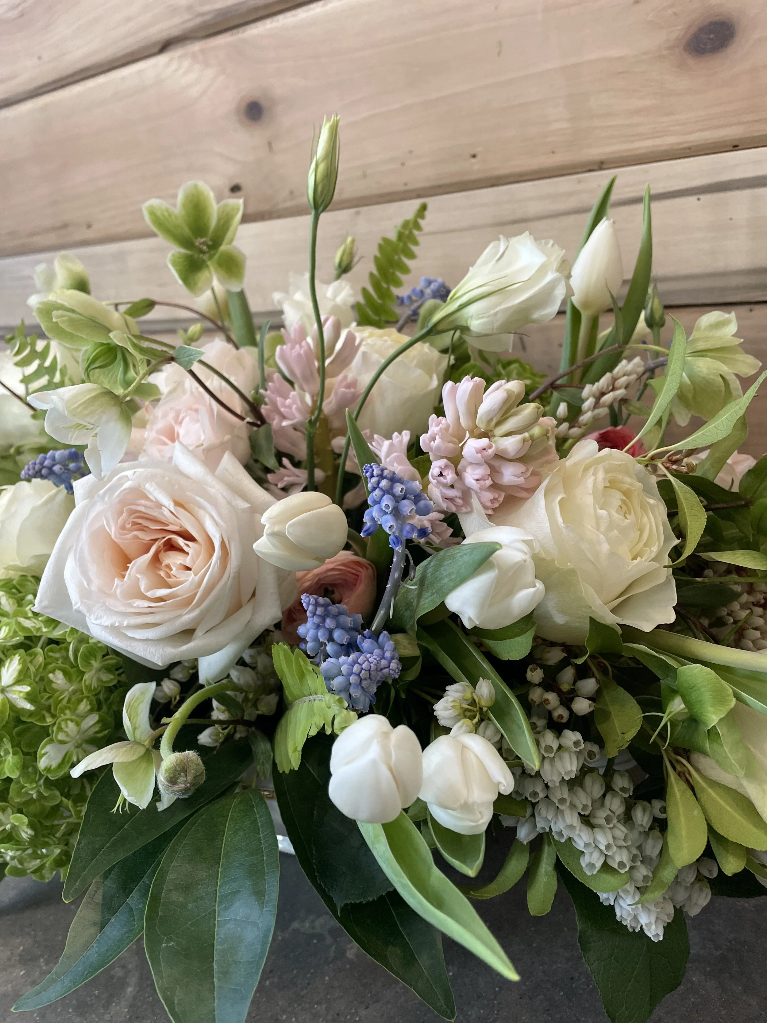 A custom arrangement for your sweetie. Flowers will be arranged in a vase with colors of your choice: rich and vibrant reds, soft peach and neutral whites, colorful and bright yellows and pinks. Special requests are welcome.